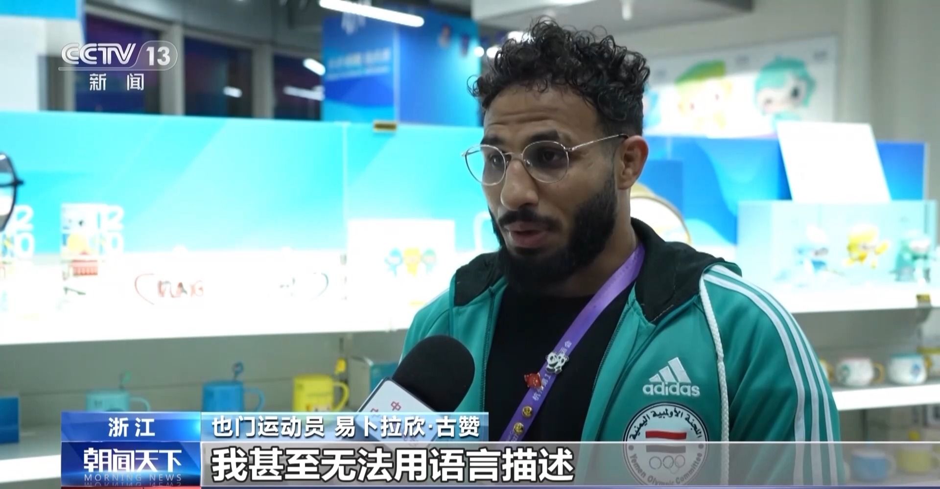 也门运动员 易卜拉欣·古赞:这是我第一次来中国,我甚至无法用语言描述中国人有多么友好。我会再来这里,因为我还要再和这些亚运会上交的朋友们见面,我爱这里的人,我会一直记得这次亚运会,一生都不会忘掉。