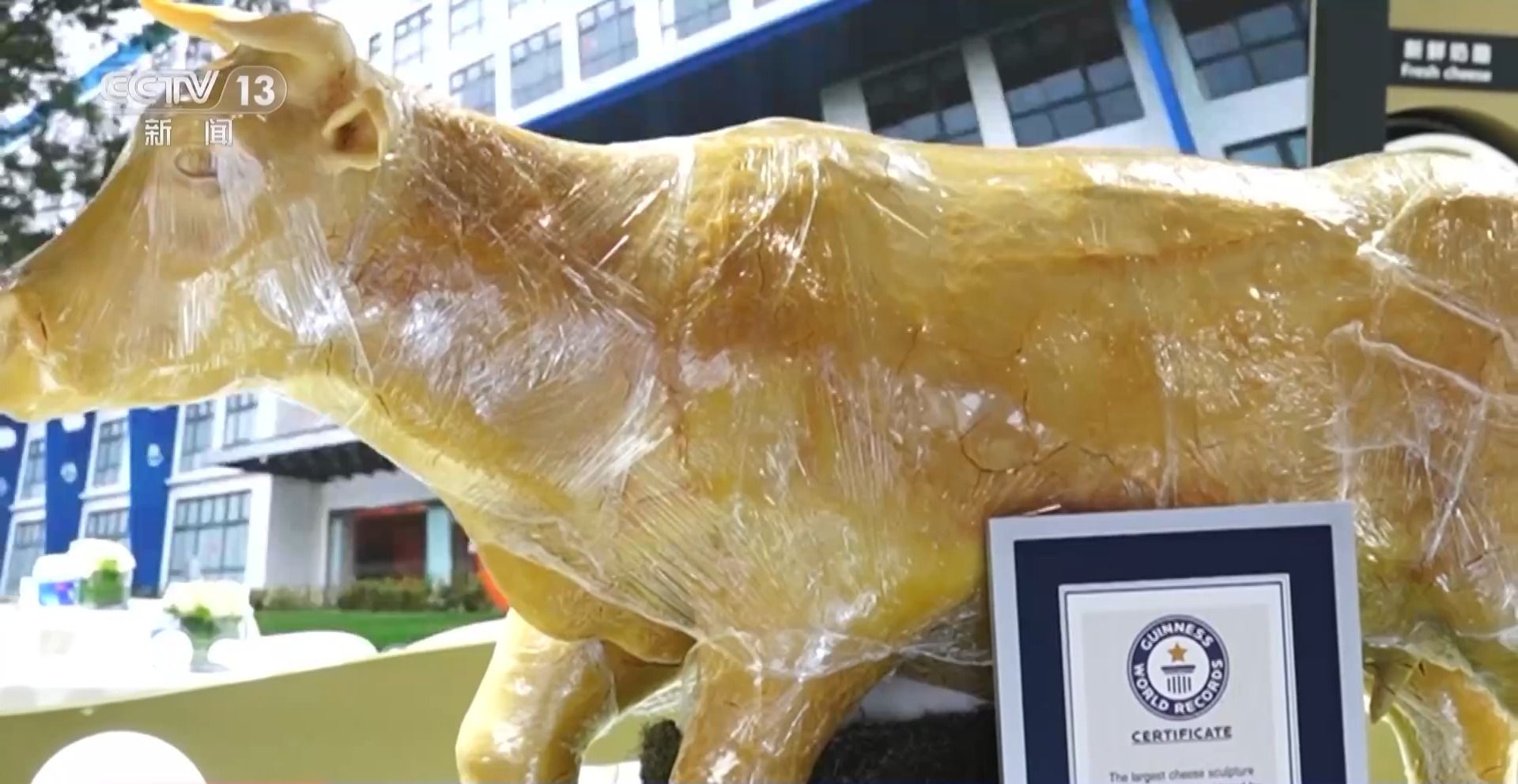一头近两米长的奶牛,重达八百斤,全身用奶酪雕刻而成,20名工匠花了5天时间,创造了本届进博会上的一项吉尼斯世界纪录。
