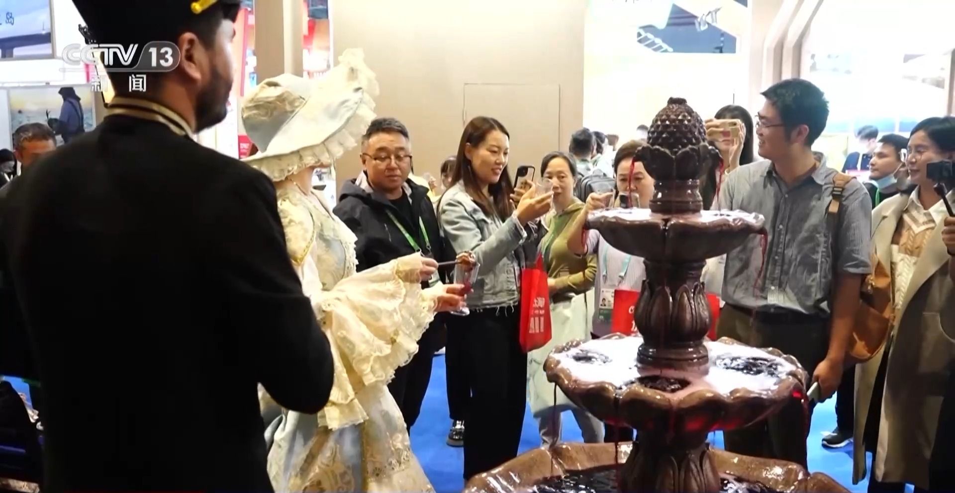 喷泉中流出红酒、驻足的人们都可上前品鉴,一家法国红酒企业试图用酒香留住人群。