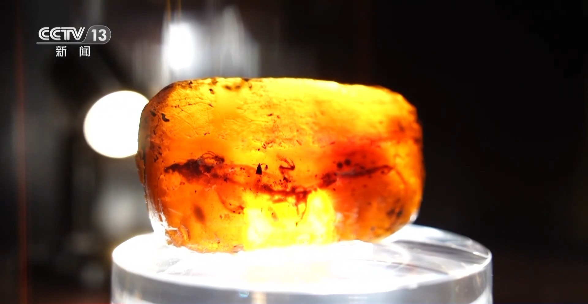 白岩松:几年前,进博会开幕的时候,人们用四个字来做表达,那就是未来已来。的确,进博会让大家更加关注未来,但是千万别忘了,在进博会的时候人们也能看到非常悠久的历史,比如说一亿年前,一滴树脂裹着动植物坠落到大地,穿越一亿多年的这种时光,变成了极其漂亮的琥珀。一亿年前可是白垩纪的时代,恐龙还是这个世界的主角,但是这些琥珀穿越岁月的时光之后,从瑞典来到了这届的进博会,也就是现在我所看到的这个展览空间里头的这些展品。