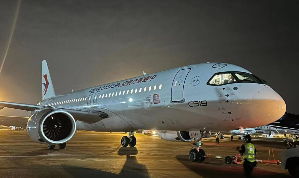 The first C919 took off at the Shanghai Hongqiao International Airport at 8:04 pm on Friday, successfully conducting a direct flight of around 4,200 kilometers, arriving at Singapore at 01:49 am on Saturday.