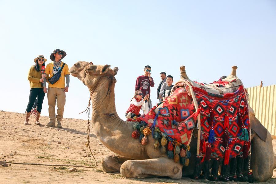 Chinese tourists visit the Giza Pyramids scenic spot in Giza, Egypt, on Feb. 8, 2024. (Xinhua/Ahmed Gomaa)