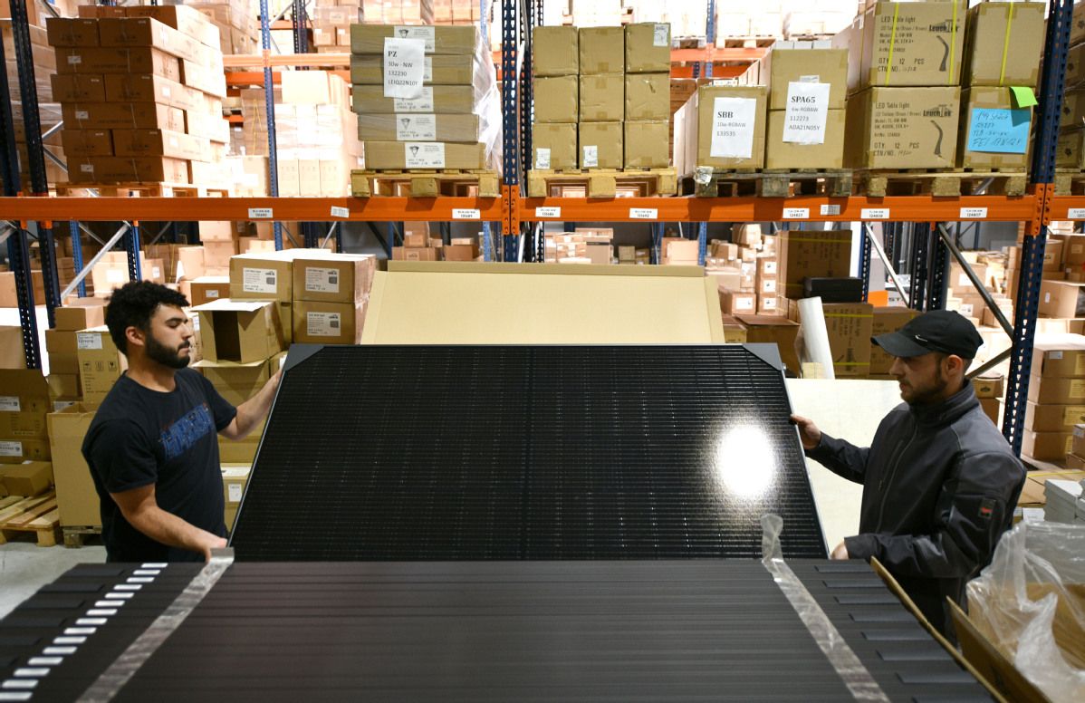 Photovoltaic panels manufactured by Chinese company DMEGC are prepared for delivery in Ahrensburg near Hamburg, Germany, in October. The company saw a 50 percent increase in its exports to Europe in the first half of 2023. REN PENGFEI/XINHUA