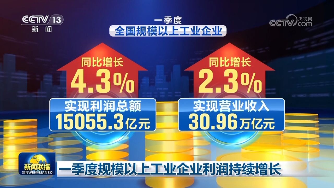 央视网消息(新闻联播):国家统计局今天(4月27日)发布数据显示,随着宏观组合政策实施力度不断加大,市场需求逐步改善,工业生产回升向好,一季度规模以上工业企业利润延续增长态势,工业企业营收继续恢复。