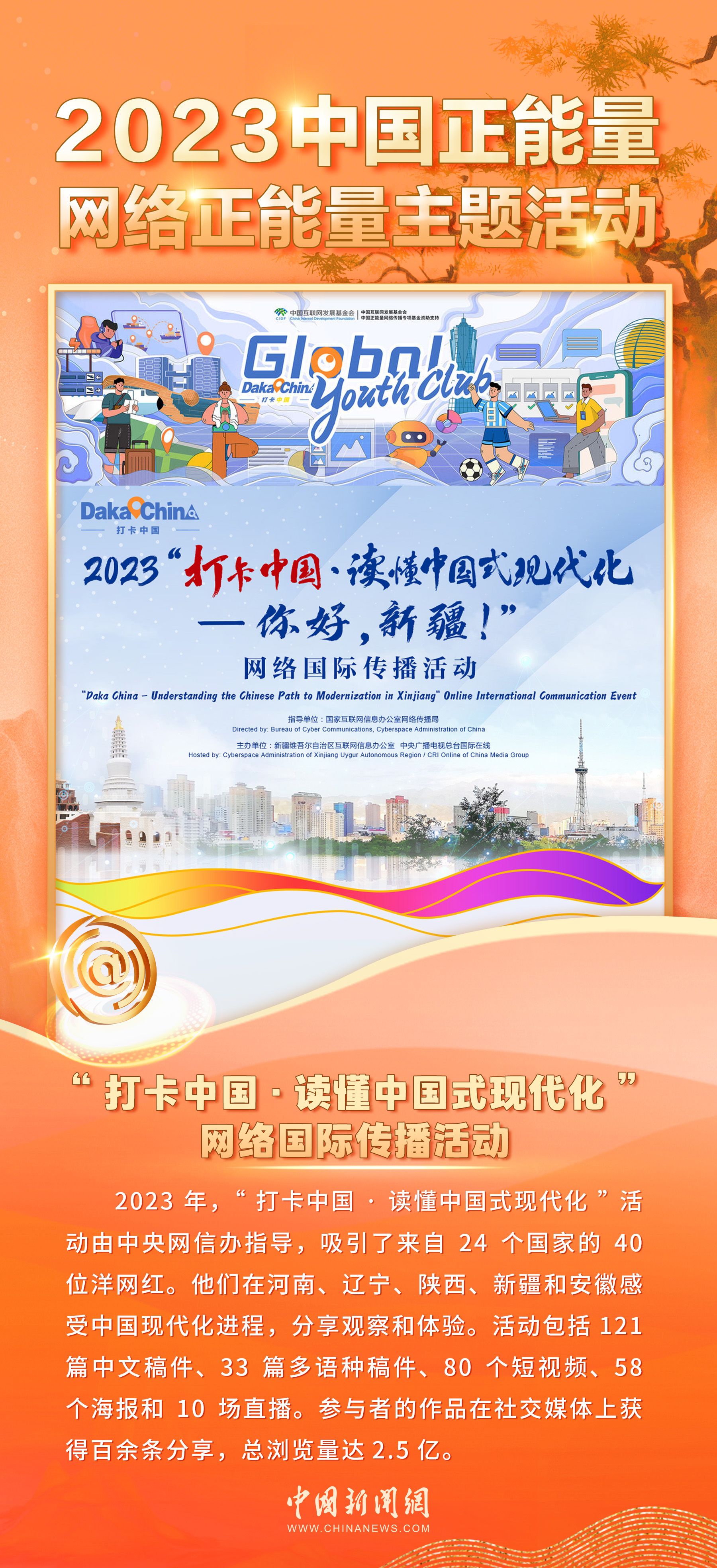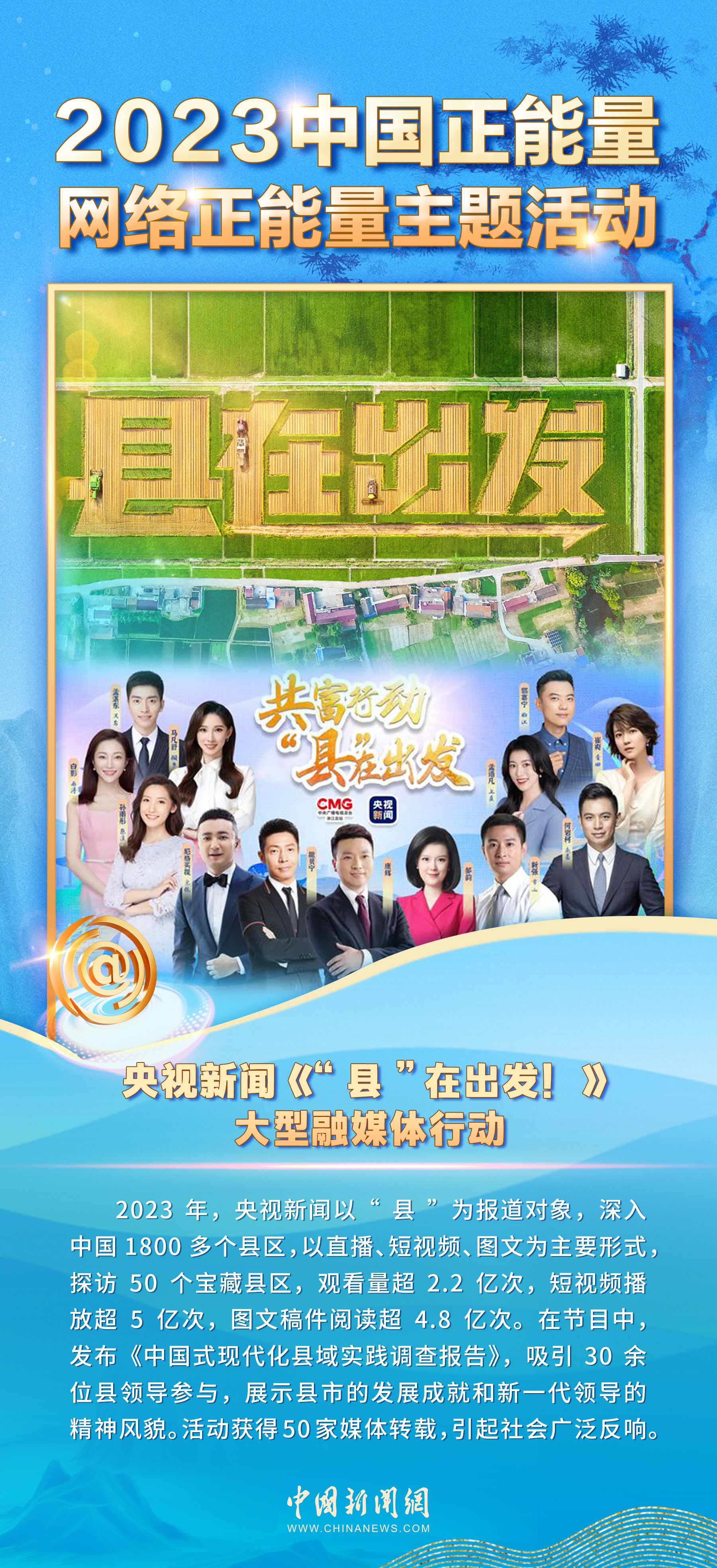 2024年3月底,由中央网信办主办的2023中国正能量网络精品征集展播活动揭晓结果,其中多个以“把中国式现代化的美好图景一步步变为现实”为主题的活动报道,向人们展示了中国式现代化实践道路上的万千气象