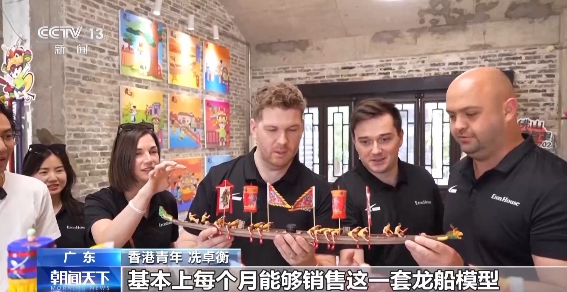 画面中的这群大湾区青年,用数字化研发文创产品,他们对龙船的结构部件进行3D扫描,激光雕刻成一块块模型板,成为一组可以自行拼装的模型,让大家动手体验“造”龙船的乐趣。如今,这些非遗文创,已经出口到澳大利亚、美国、毛里求斯等地。