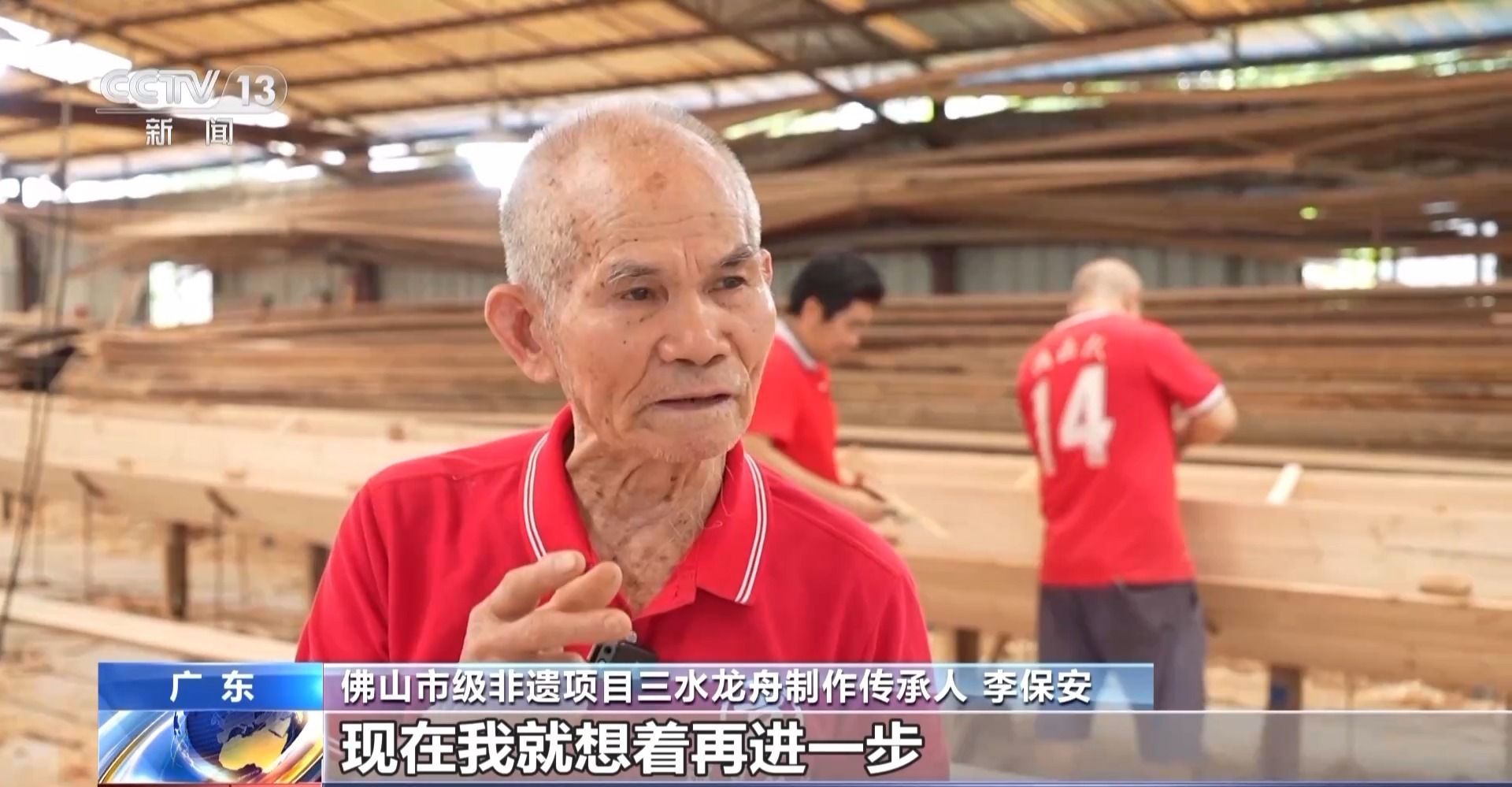 佛山市级非遗项目三水龙舟制作传承人 李保安:香港、福建、江西、顺德,大多数大型、小型的龙舟,都是来找我。现在我就想着再进一步,让我们的龙舟达到世界水平。