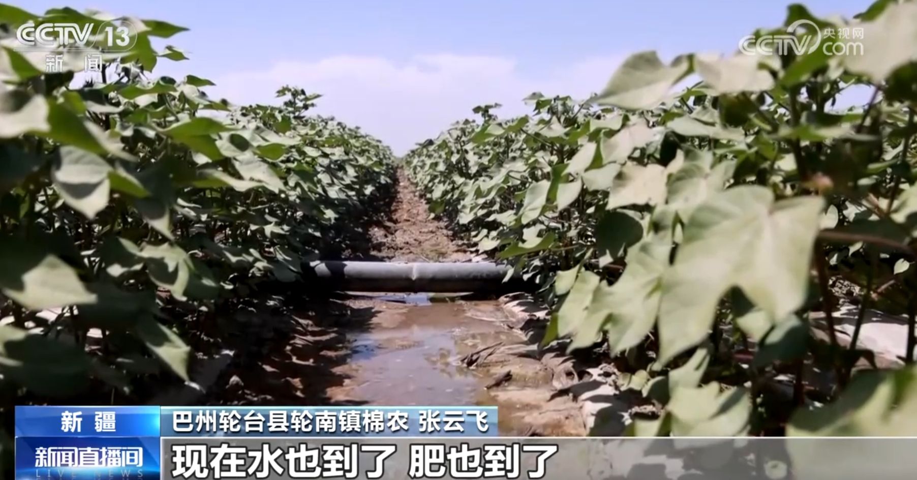 巴州轮台县轮南镇棉农张云飞称:“现在正是对水肥需求的高峰期,正好塔里木河的水来得非常及时,现在水也到了,肥也到了,棉花长势非常好。”