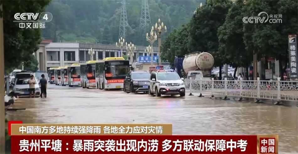 受强降雨的影响,23日,贵州平塘县低洼路段出现内涝。恰逢当地中考最后一天,为保障学生顺利参考,平塘县第一时间启动应急预案,引导接送考生车辆安全行驶。