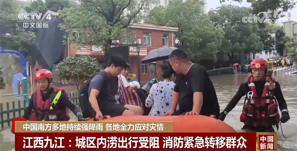 23日,江西九江遭遇强降雨,城区出现积水内涝,部分路段积水深超一米,居民出行受到影响。当地消防救援人员利用橡皮艇帮助群众转移,同时,消防救援人员使用浮艇泵,连接水带,开展排水作业。