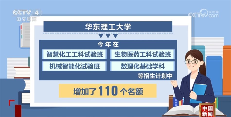聚焦国家重大战略和区域经济社会发展需求,今年不少高校强化了理工科优势专业招生计划。北京化工大学今年增加了300个招生计划,主要投放在化工、材料、机械和生物工程等理工类国家急需专业以及数学、物理等基础学科。华东理工大学今年在智慧化工工科试验班、生物医药工科试验班、机械智能化试验班、数理化基础学科等招生计划中,增加了110个名额。