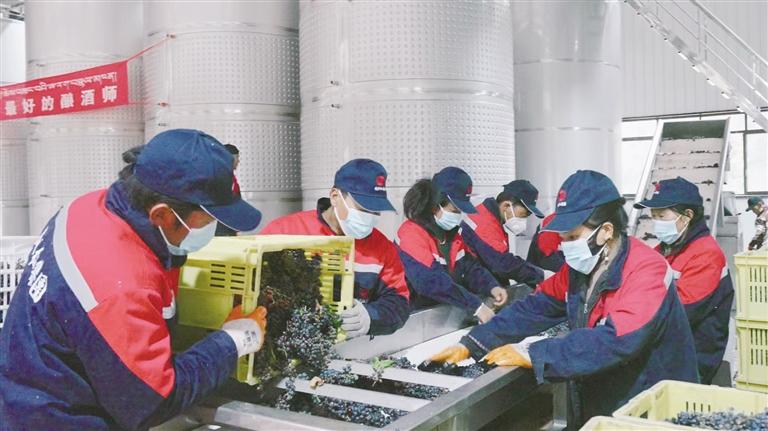 成功红天麓酒庄工作人员对葡萄进行分拣。图由 拉萨海关 提供