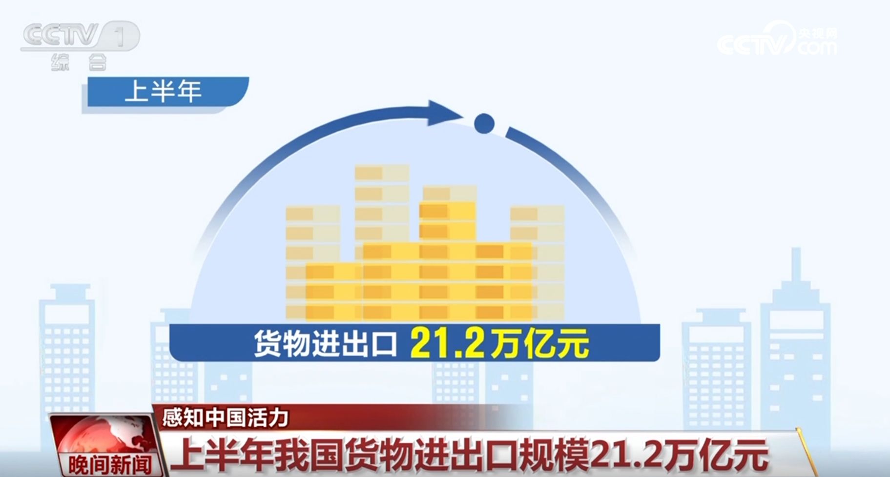 与此同时,我国外贸运行稳中有进,货物贸易展现较强韧性和市场活力。上半年,货物进出口规模21.2万亿元,创历史同期新高,同比增长6.1%。日均进出口额较2019年同期增长超40%。外贸新动能加快培育,上半年跨境电商出口继续保持快速增长,船舶、汽车等优势产品出口较快增长。商务部对1.6万家重点外贸外资企业调查显示,超七成企业预计全年出口有所增长。