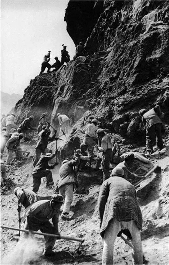 修筑川藏公路二郎山段的场景。