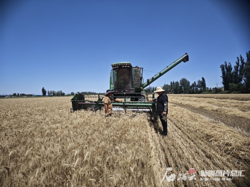 7月15日,在奇台县半截沟镇腰站子村,农机手正驾驶联合收割机收获小麦。 何龙 摄