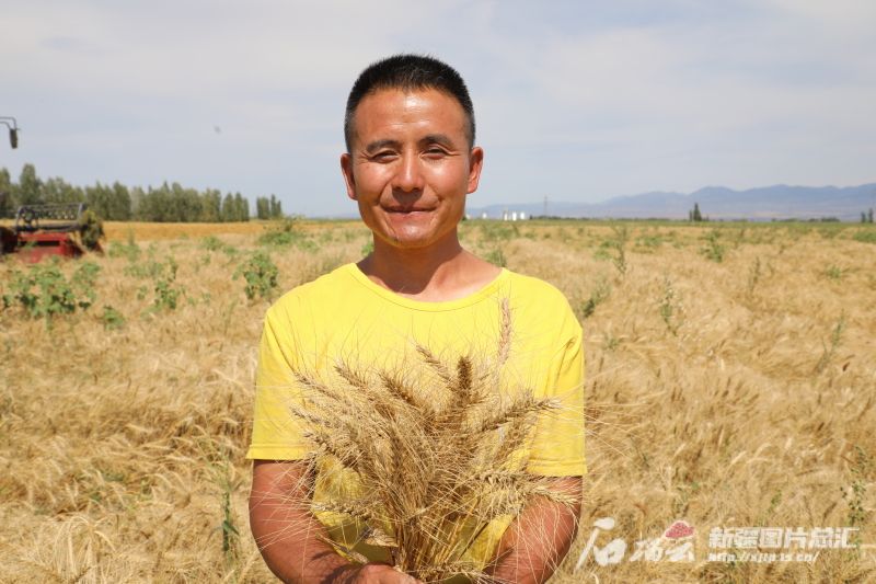 8月6日,在刚刚进入收割期的吉木乃县托斯特乡塔斯特村,种粮大户任江林捧着粒粒饱满的小麦和乡亲们分享丰收喜悦:“今年咱们的麦子产量不错,我家一亩地比去年增产20公斤,800亩地就能增产16吨。”