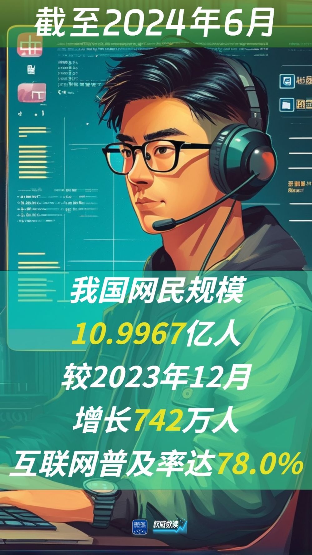 报告显示,截至2024年6月,我国网民规模近11亿人(10.9967亿人),较2023年12月增长742万人,互联网普及率达78.0%