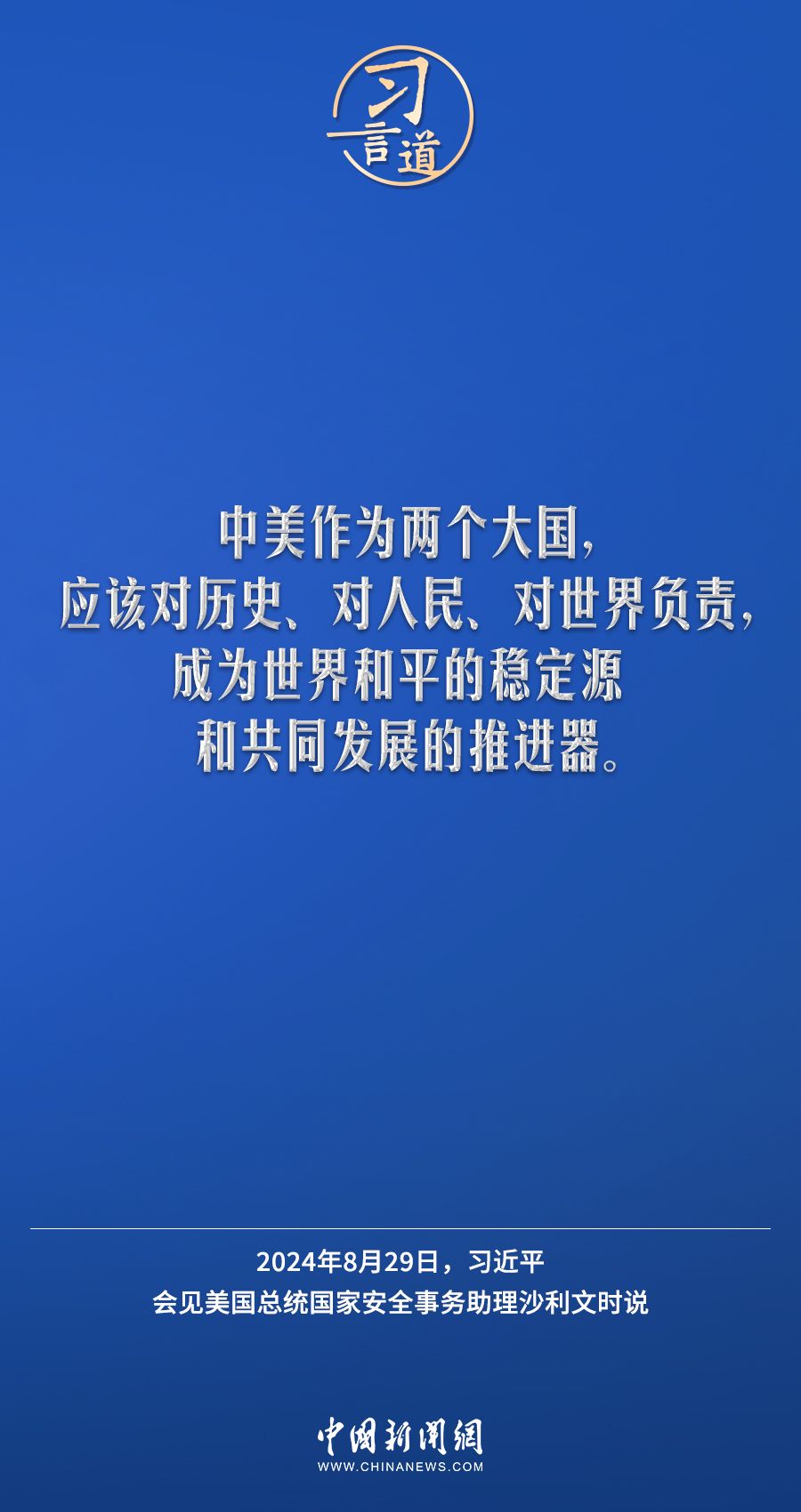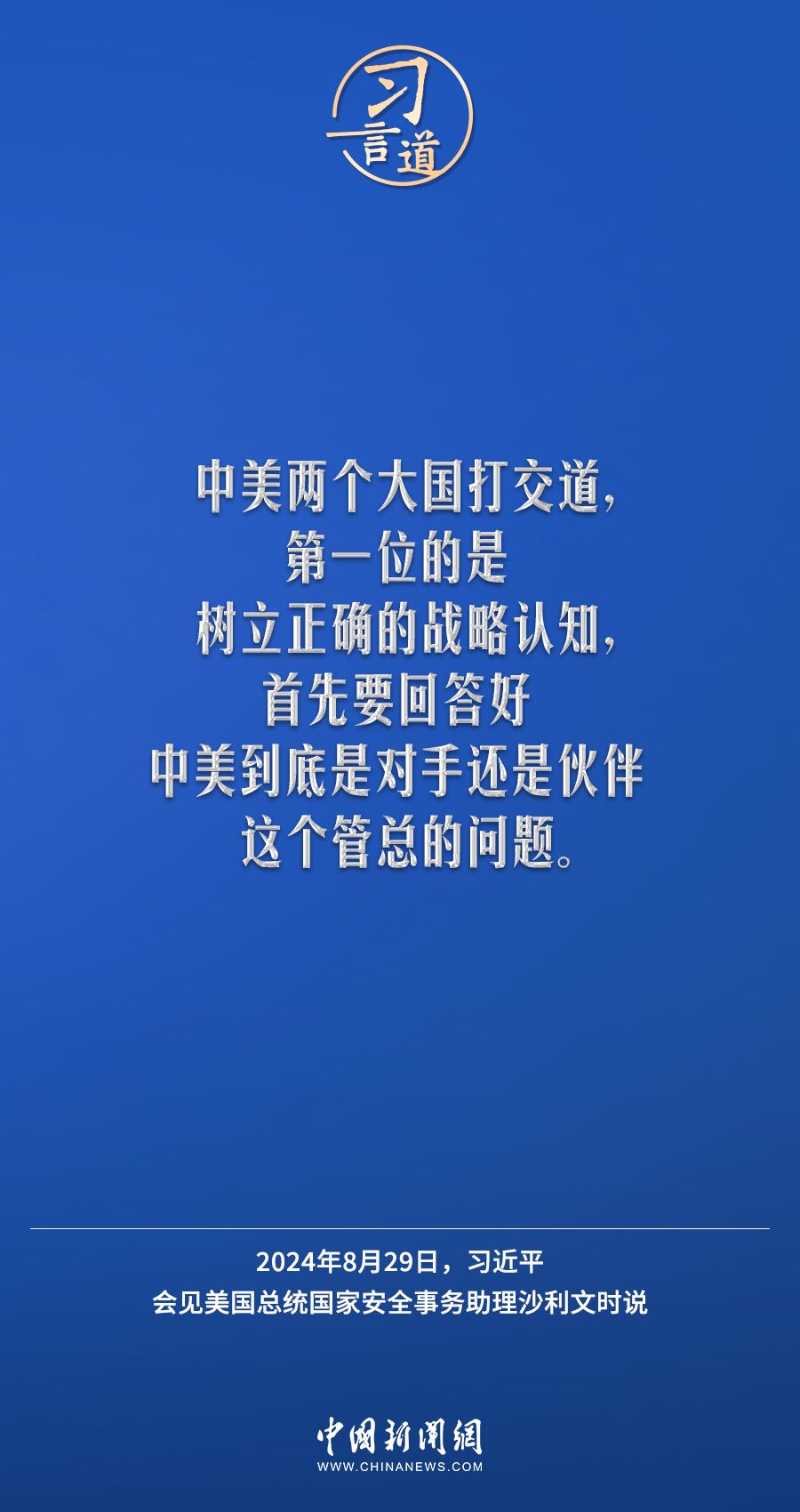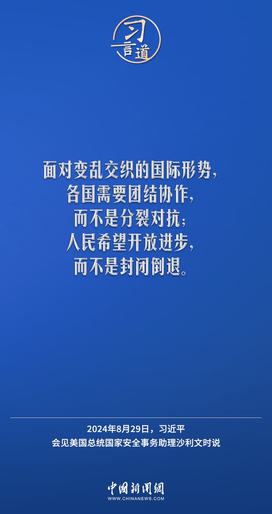 8月29日,国家主席习近平在北京人民大会堂会见美国总统国家安全事务助理沙利文。习近平指出——