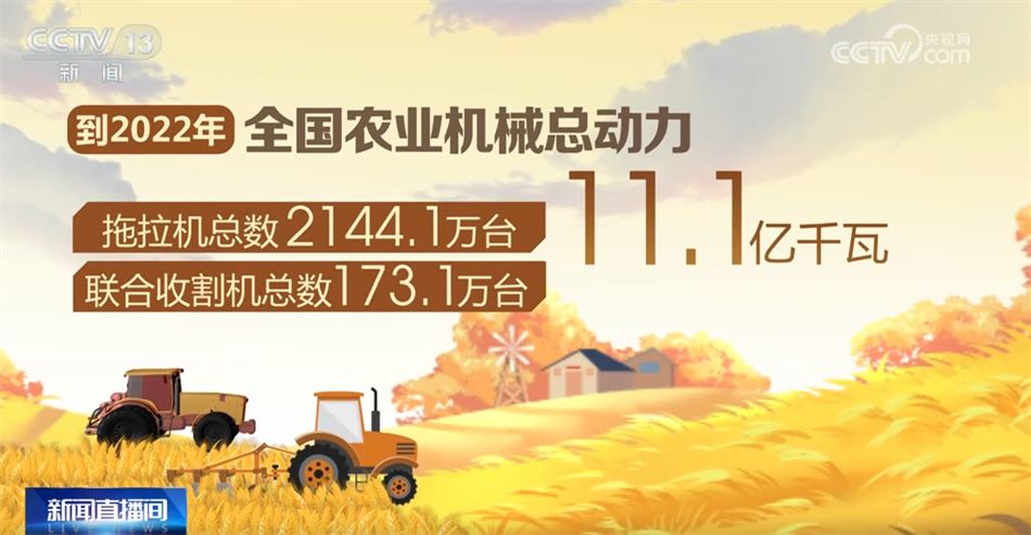 新中国成立以来,我国农业装备和农业机械化水平实现了跨越式发展。1952年全国农业机械总动力仅18.4万千瓦,拖拉机不到2000台,联合收割机仅284台。到2022年,全国农业机械总动力达到11.1亿千瓦,拖拉机总数达到2144.1万台,联合收割机总数达到173.1万台。目前,全国农作物耕种收综合机械化率超过73%,小麦生产基本实现全程机械化,玉米、水稻耕种收综合机械化率超过80%,农业生产从主要依靠人力畜力向主要依靠机械动力转型升级。