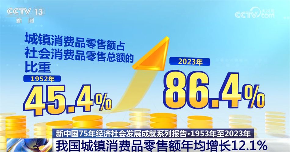 国家统计局11日公布的新中国75年经济社会发展成就系列报告中指出,新中国成立75年以来,随着城镇化进程加快,以城带乡、城乡融合的流通发展机制不断完善,消费市场区域协调性不断增强。