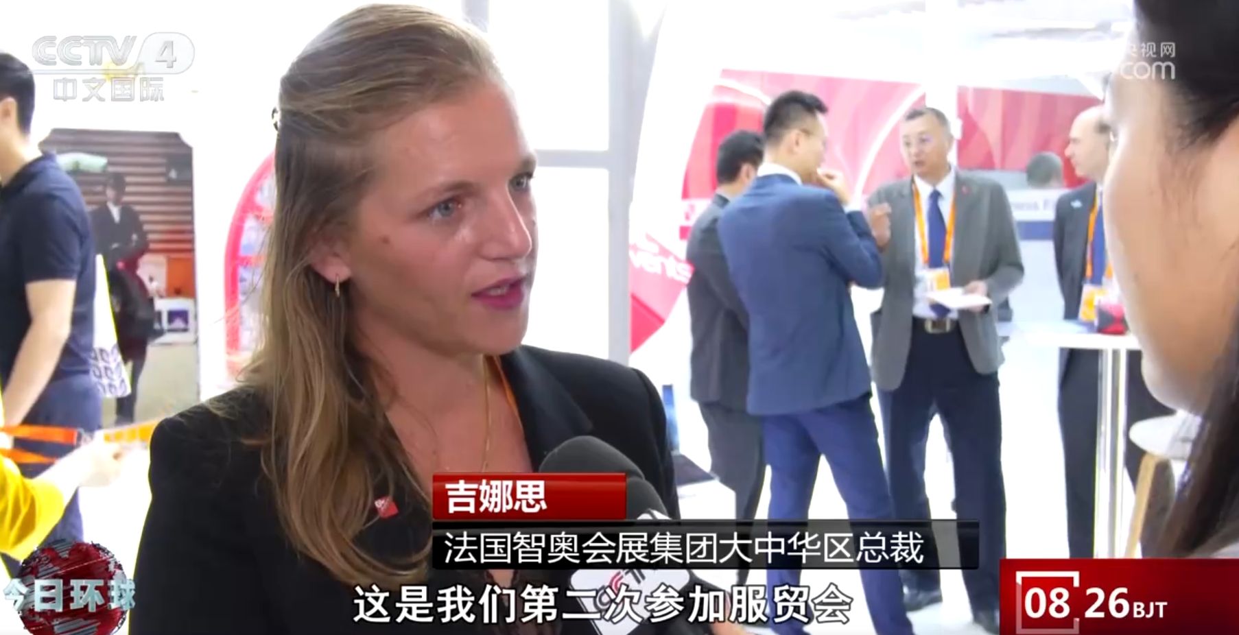 法国智奥会展集团大中华区总裁吉娜思称:“这是我们第二次参加服贸会。从昨天开始,我们见到了很多人,我们相信今年服贸会肯定还会给我们带来一些新的业务。”