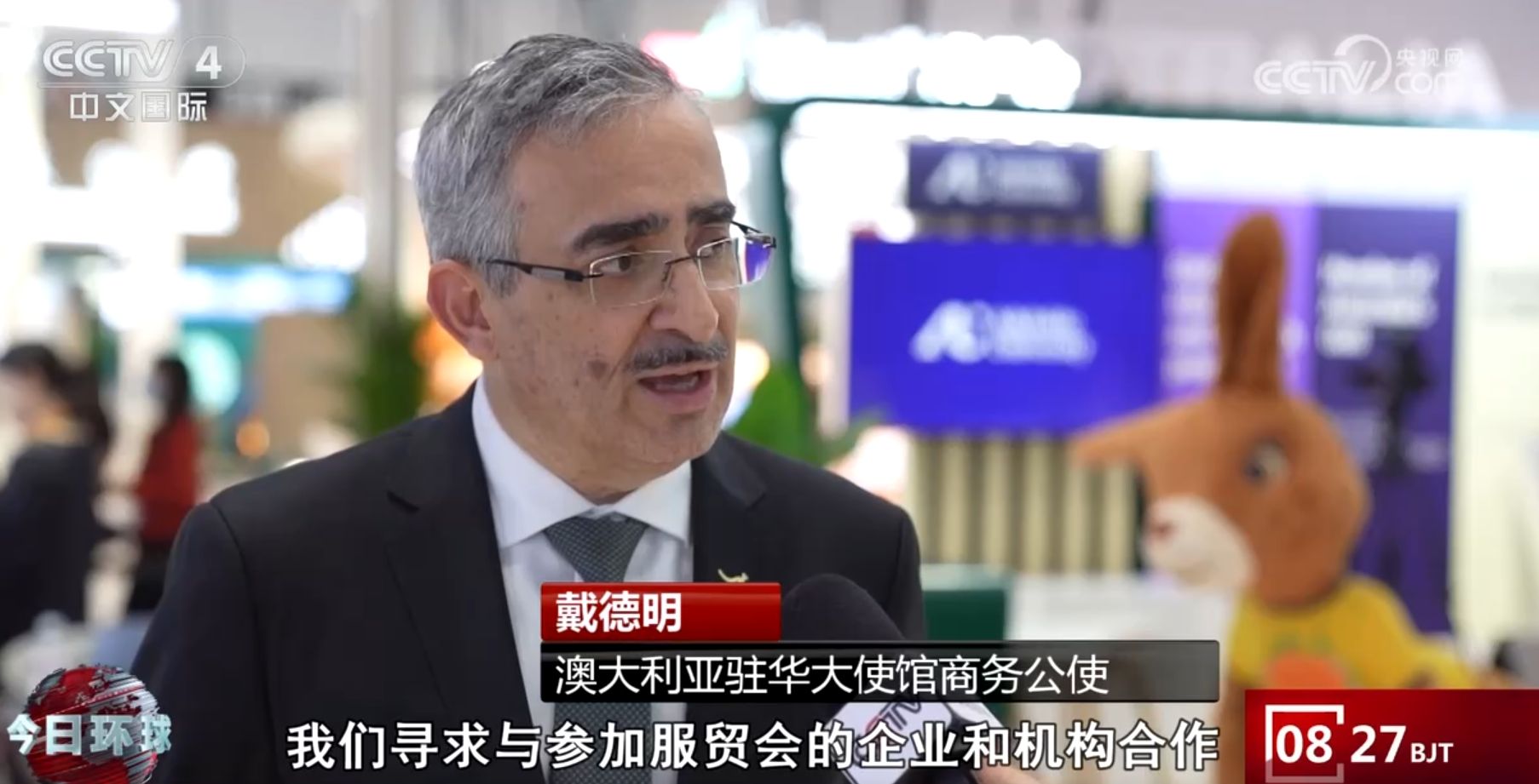 澳大利亚驻华大使馆商务公使戴德明称:“我们寻求与参加服贸会的企业和机构合作,制定一个合作计划,随着中国的发展,我们看到了机遇。”