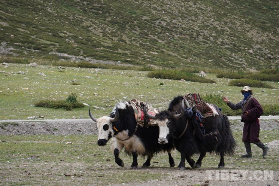 图为牦牛与赶牛人 摄影:张宇
