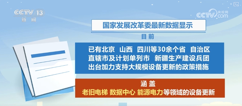 8月份,不少设备制造相关行业的增加值都出现两位数增长。国家发展改革委的最新数据显示,目前,已有北京、山西、四川等30余个省、自治区、直辖市及计划单列市、新疆生产建设兵团出台加力支持大规模设备更新的政策措施,涵盖老旧电梯、数据中心、能源电力等领域的设备更新。