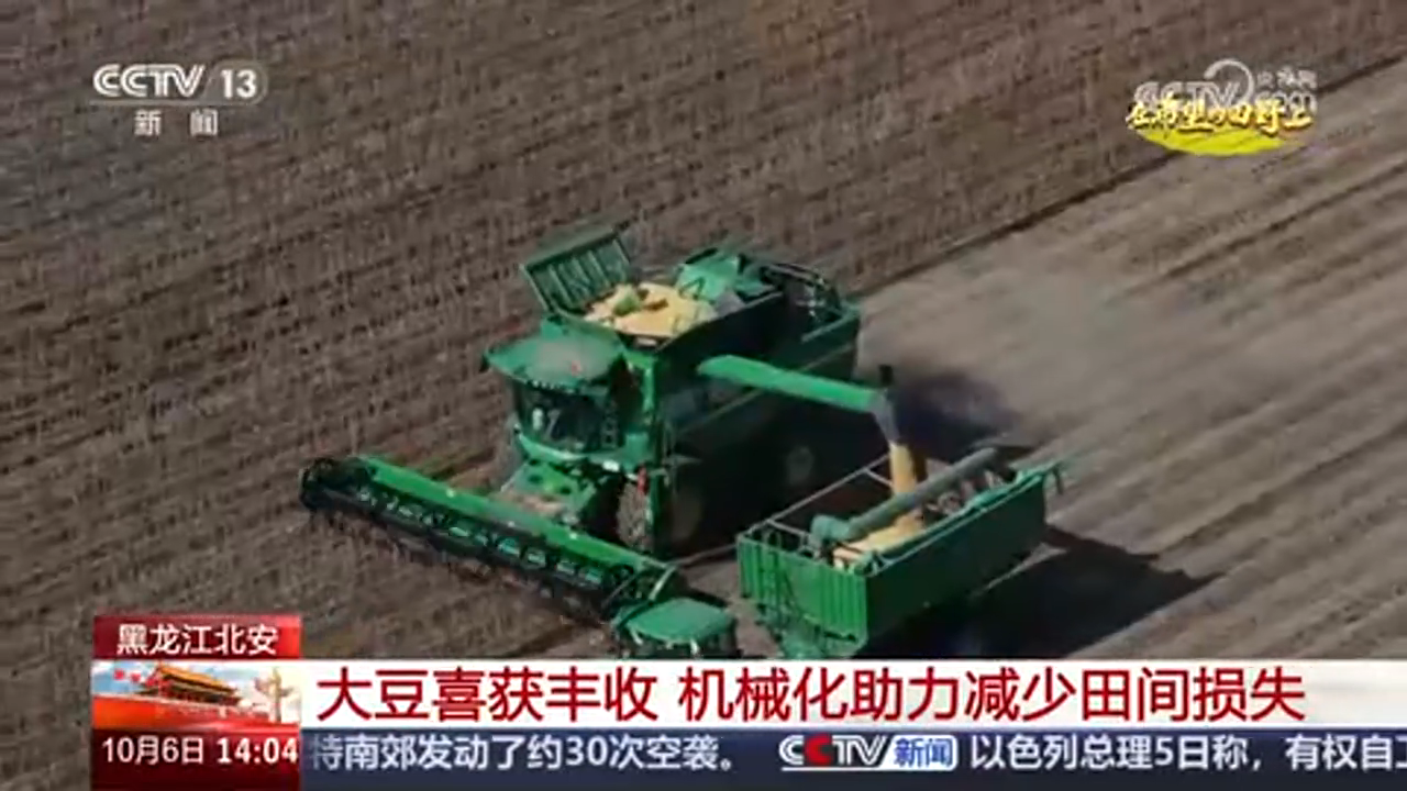 黑龙江北安:大豆喜获丰收 机械化助力减少田间损失