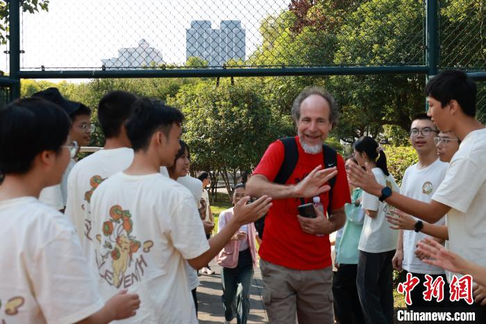 10月11日,辛辛那提—柳州姐妹城市委员会主席约瑟夫与柳州学生互动。 林馨 摄