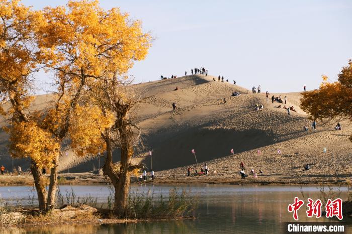 时值晚秋,位于塔克拉玛干沙漠边缘的罗布人村寨景区内,金色的胡杨装点着景区,络绎不绝的游客或爬上连绵起伏的沙丘,感受长河落日圆的大漠风情,或骑上骆驼,和驼队一起穿越沙漠,或坐上沙漠越野车,体验在无垠沙海中冲浪的惊险与刺激……