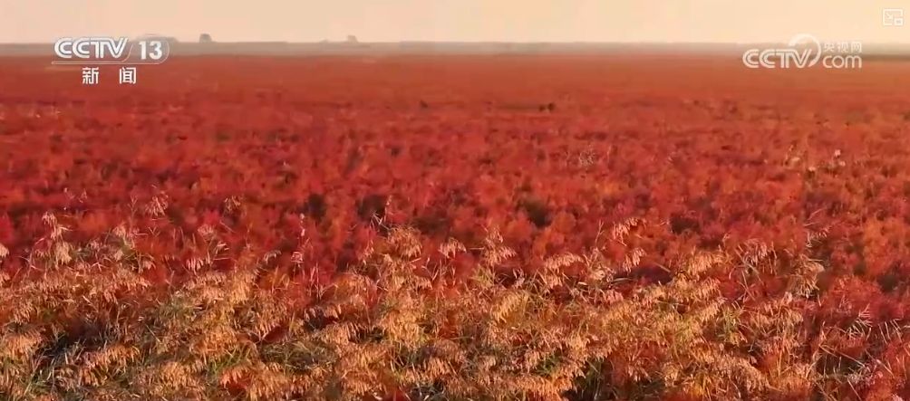 这段时间,在山东东营黄河入海口处,大片大片的盐地碱蓬绵延无际。广袤的黄河口湿地仿佛披上盛装,又宛若一块巨大的红地毯。成群结队的鸟儿在这里栖息,处处洋溢着迷人而浪漫的秋日风情。