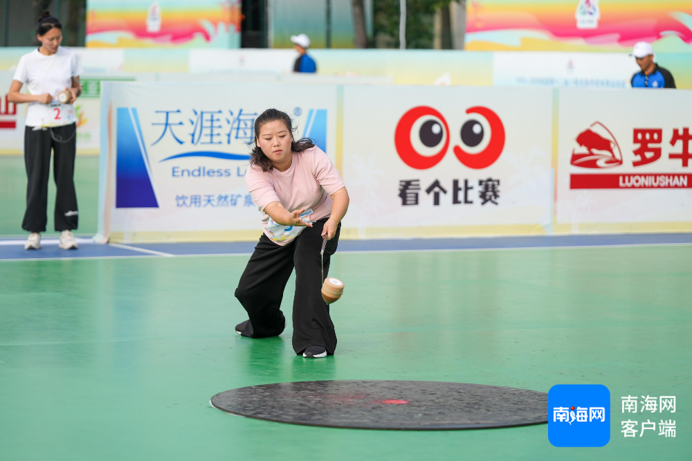 利落的马尾辫,轻快灵活的身姿,潇洒地绕绳放陀,“啪”的一声守方陀螺应声被击打出场外,黝黑的小脸上满是自信……在三亚技师学院篮球场,海南黎族姑娘董健云激情迎战。