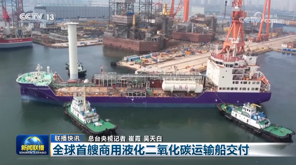 由中国船舶大连造船自主研发建造的全球首艘商用液化二氧化碳运输船,近日正式交付国外用户。该船一次可运输7500立方米的液化二氧化碳。