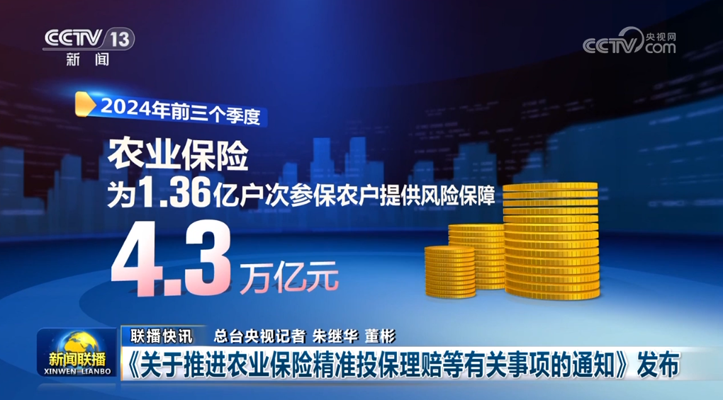金融监管总局等四部门近日联合发布通知,对农业保险投保理赔、应收保费、条款费率、数据共享等提出要求,进一步提高投保理赔精准性,推动我国农业保险高质量发展。今年前三个季度,农业保险为1.36亿户次参保农户提供风险保障4.3万亿元。