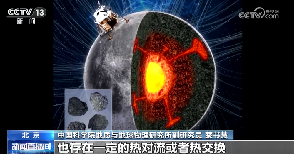 蔡书慧称:“发现距今20亿年的时候,也就是月球演化的偏中后期,它还存在一个非常弱的磁场,强度是2—4个微特,不到现今地球磁场的10%。这说明在距今20亿年的时候,月球的内部可能还是有一定的活力的,也存在一定的热对流或者热交换。”
