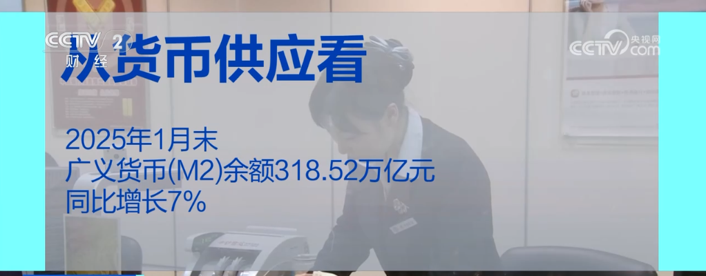 从货币供应看,2025年1月末,广义货币(M2)余额318.52万亿元,同比增长7%。从信贷投放看,1月末,人民币贷款余额260.77万亿元,同比增长7.5%;1月份,人民币贷款增加5.13万亿元,同比多增2133亿元。