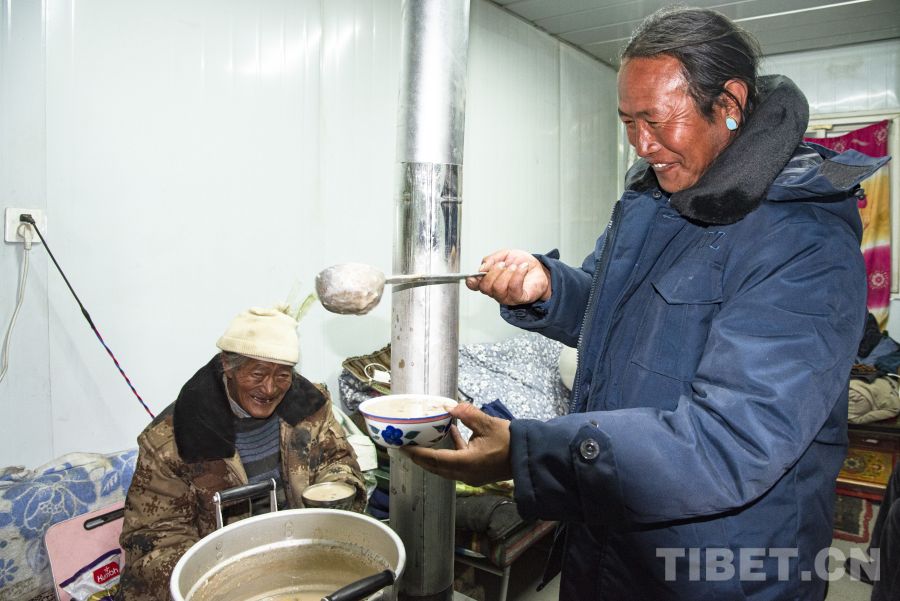 在日喀则市定日县长所乡茶江村受灾群众安置点,我们走进了扎西大哥的家里,品尝一碗热腾腾的‘古突’。