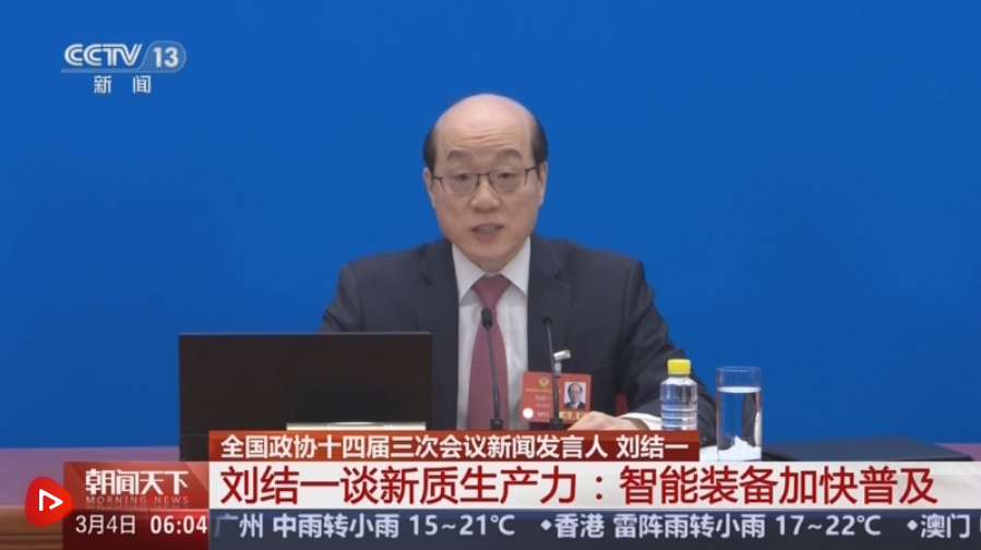 新质生产力在2024年全国两会上被首次写入政府工作报告。发布会上,刘结一介绍了过去一年全国政协在培育和发展新质生产力开展的工作以及取得的成效。