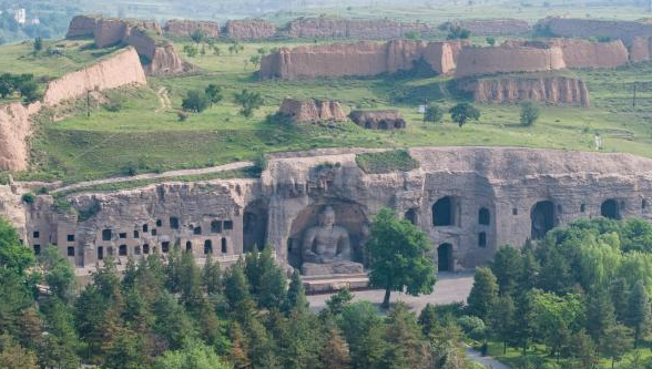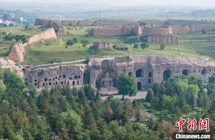 2024年7月3日,山西大同,航拍山西大同云冈石窟。(无人机照片) 中新社记者 武俊杰 摄