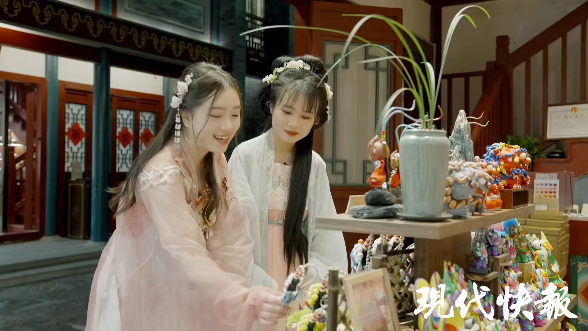 透过无数珍贵的文物,两位青年感受到了古人的智慧与生活;在现代化科技打造的沉浸式体验中,她们穿上汉服,一秒穿越到古代街市,切身体验大运河对人们生活带来的深远影响。