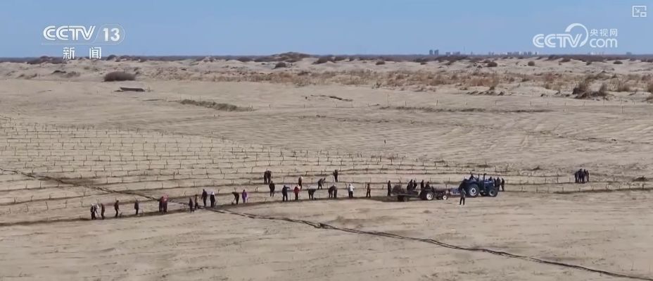 位于塔克拉玛干沙漠南缘的新疆策勒,眼下,当地干部群众忙着栽种红枣、梭梭,铺设滴管,向沙漠腹地挺进。