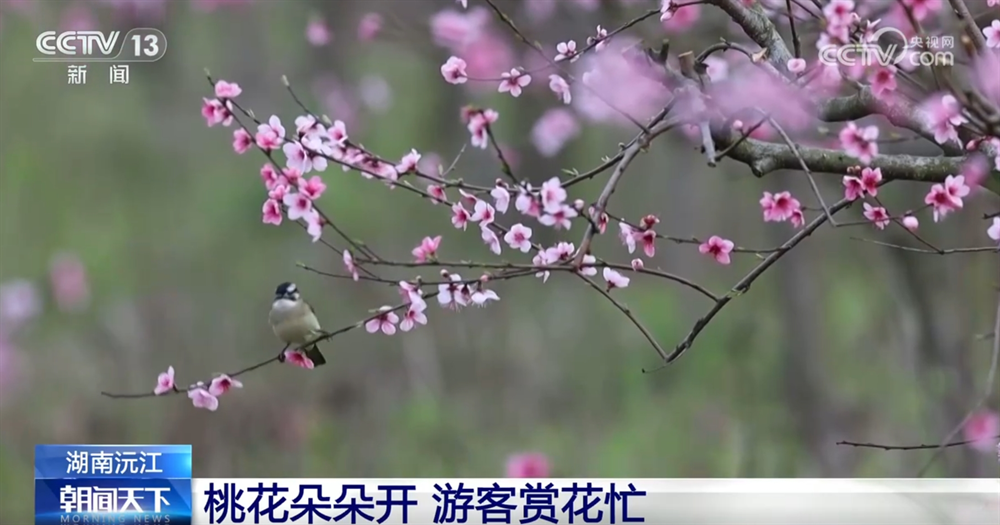 这段时间,湖南沅江市新湾镇新湾村的桃花迎来盛花期,游客们趁着大好春色赏花拍照。