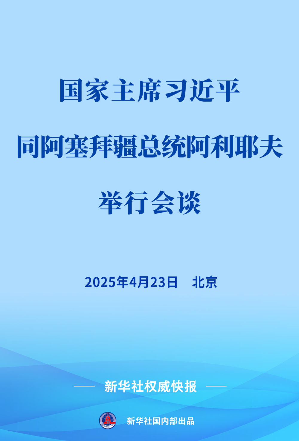 4月23日,国家主席习近平在北京同来华进行国事访问的阿塞拜疆总统阿利耶夫举行会谈。