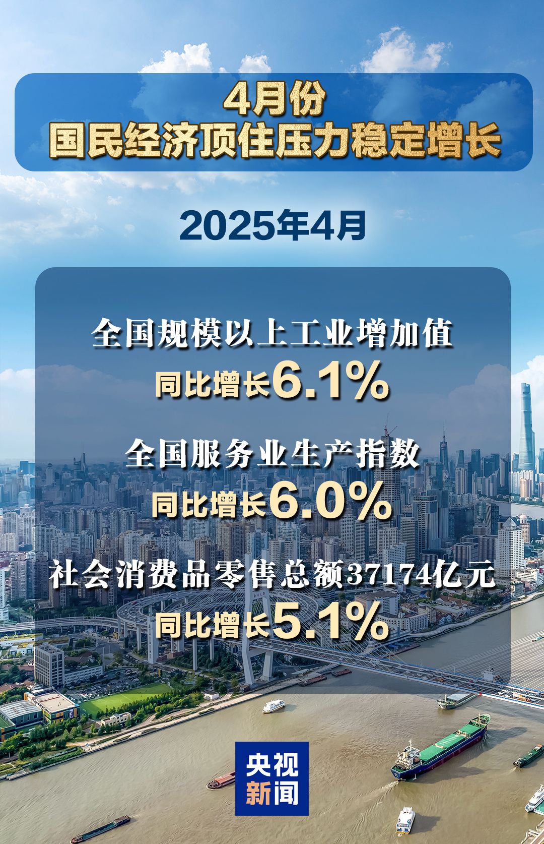 从纵向看,前4个月,中国经济主要生产需求指标增速均明显快于上年全年,社会消费品零售总额和服务业生产指数同比增速均比前3月加快0.1个百分点;4月份,在41个大类行业中,36个行业同比增长,增长面超八成……数据显示,前4个月中国经济顶住压力稳定增长,延续向新向好的发展态势,展现了强大韧性和抗冲击能力。