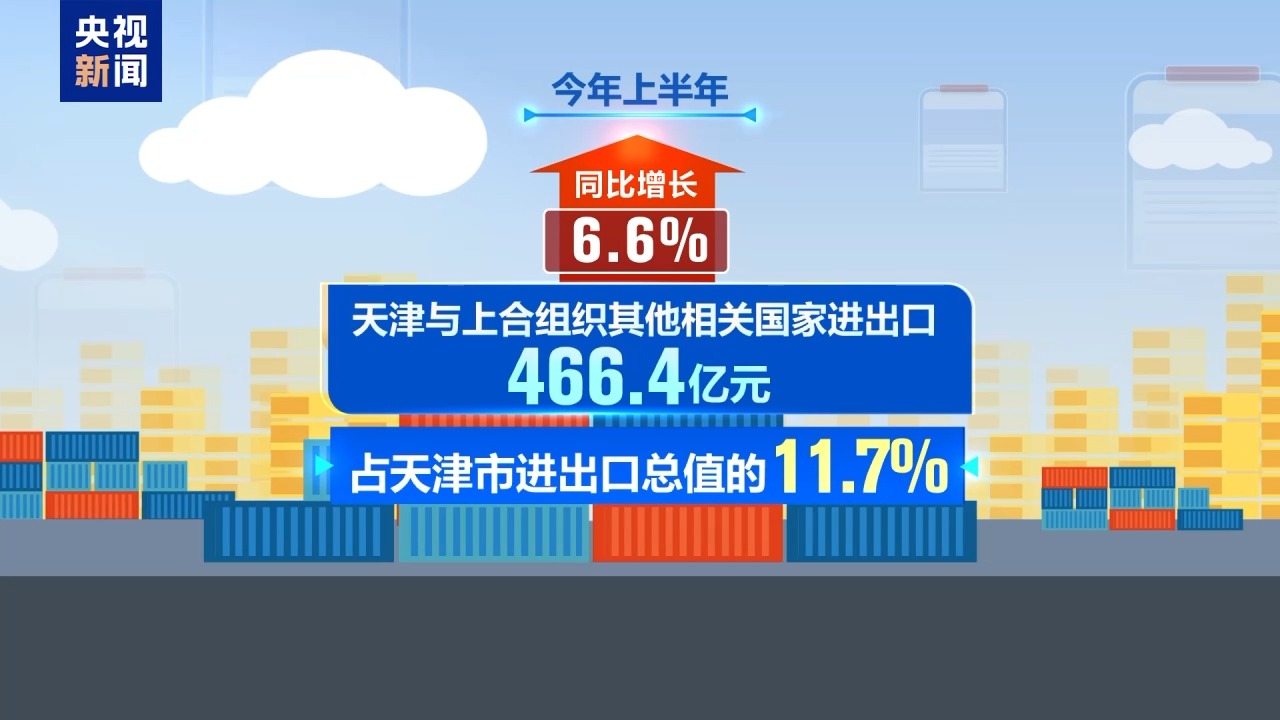 今年上半年,天津与上合组织其他相关国家进出口466.4亿元,同比增长6.6%,占天津市进出口总值的11.7%。上合组织相关国家已成为天津外贸增长的重要支撑。