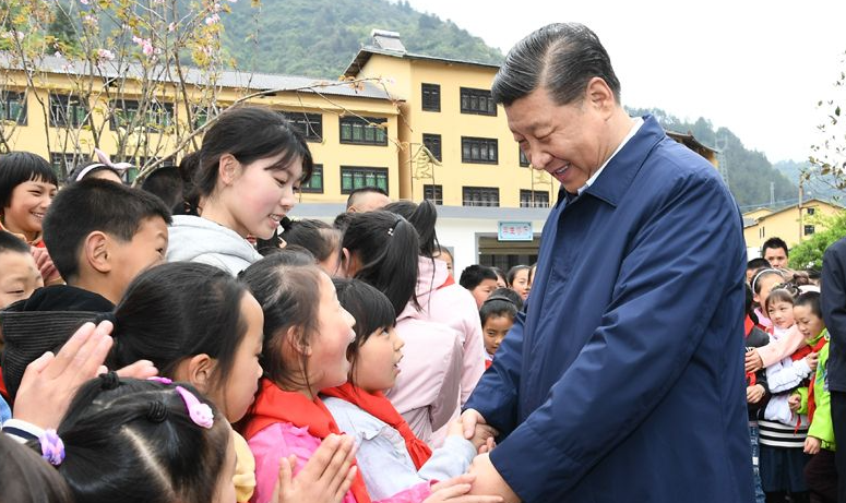 2019年4月15日,习近平总书记来到重庆市石柱土家族自治县中益乡小学看望老师和同学们,并同他们亲切交流。