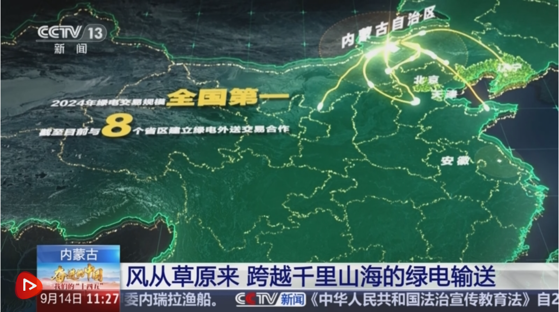 在“能源动脉”特高压之外,还有无数的“毛细血管”共同运输绿电。内蒙古2024年绿电交易规模位居全国第一,截至目前已与8个省区建立了绿电外送交易合作。今年6月,蒙西电网绿电首次实现外送南方电网,将内蒙古的绿电送到广东。