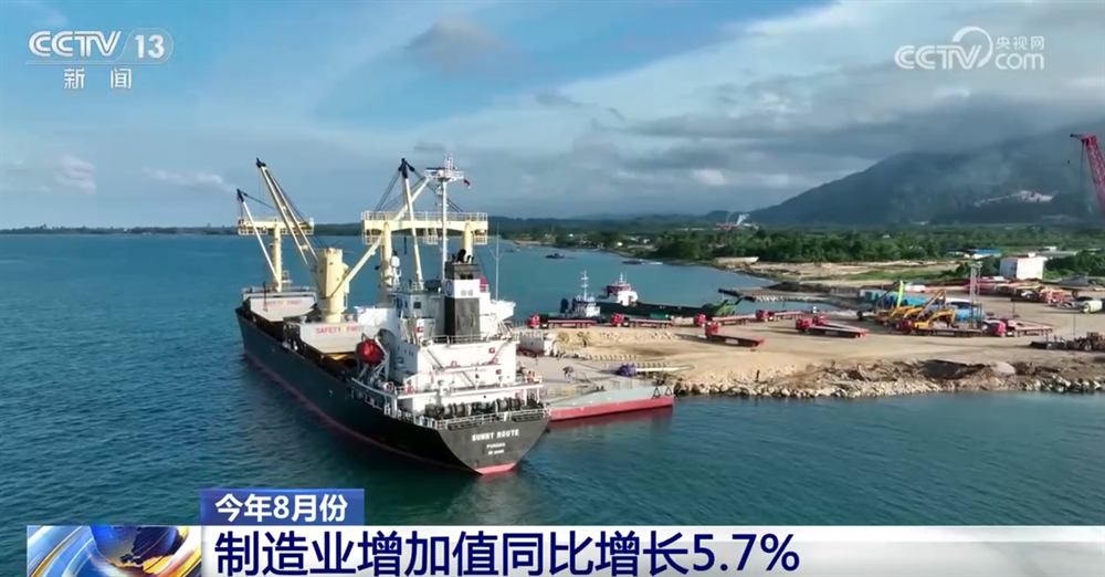 内需继续扩大。从消费看,8月份社会消费品零售总额同比增长3.4%,以旧换新相关商品零售额继续保持较快增长。前8个月服务零售额同比增长5.1%,增速快于商品零售额增速。从投资看,1—8月份固定资产投资同比增长0.5%,其中制造业投资增长5.1%,明显快于全部投资,为制造业升级发展提供有力支撑。