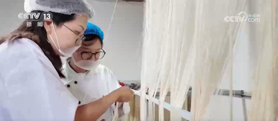 在中江县东北镇觉慧村,挂面制作师傅正在高空抻面、准备晾晒。不少游客拿起手机,拍照记录下这有趣的制作过程。不只是欣赏,游客还可以亲手体验抻面、扑粉、收面等工序。据了解,中江县的手工挂面制作历史起源于宋代,共有七十二道工序,已经列入了四川省非物质文化遗产名录。除了体验制作手工挂面,游客来到中江县,还能看非遗表演、逛非遗大集。